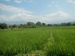 The topography of Rosario is characterized by a valley with mountainous terrain, predominantly shaped by the sharply sloping mountains of the Cordillera Central range, which runs parallel to the coast of the South China Sea. To the west, the land features narrow plains and valleys, interspersed with shallow rivers and streams. Approximately 8% of the land is level or gently sloping, while 18% is undulating to rolling. Another 30% of the land is rolling to moderately steep, and 50% is steep.[15]