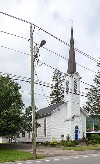 Roscoe Presbyterian Church and Westfield Flats Cemetery is a historic Presbyterian church and cemetery on Old NY 17 in Roscoe, Sullivan County, New York. The church was built about 1884 and is a simple rectangular wood-frame building, three bays wide and three bays deep, with a large rear cross-gabled wing. It features a narrow, engaged, center entrance tower surmounted by a spire. The cemetery contains about 200 burials, with the earliest dating to the first decade of the 19th century.[2]