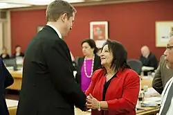 On January 29, 2010, she was appointed to fill a vacant New Brunswick seat in the Canadian Senate by Prime Minister Stephen Harper.[1] Her appointment became effective February 28, 2010.[2] Unlike the other four senators named on January 29, Poirier's appointment was delayed a month so that the government of New Brunswick would not have to call a by-election to replace her just months before the 2010 provincial election.[3]