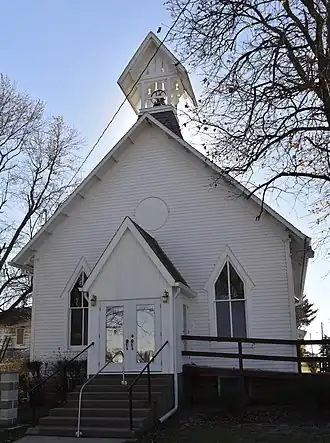 The Rose Hill Methodist Episcopal Church is a historic building located in Rose Hill, Iowa, United States. The frame building was built in 1879 in the Gothic Revival style. It is the only 19th-century church building that remains in its original location in the town.[2] The pointed arch windows are all at 45 degree angles, demonstrating the limited carpentry experience of the church members who built the structure. It was listed on the National Register of Historic Places in 2003.[1]