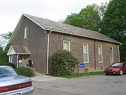 The first settler in the Rose Point vicinity were Abraham Wigle and Samuel Stickle of Westmoreland County, who arrived in 1804. Wigle was the first of many to harness the power of the Slippery Rock Creek, building a gristmill and a sawmill on its banks in about 1825; although Wigle's mill was destroyed by water, another mill (later abandoned) was built shortly before 1850,[6] and the still-preserved McConnells Mill is just 2 miles (3.2 km) downstream.[2] Various businesses were established in the community, including a hotel, blacksmiths' and cobblers' shops, and multiple stores. Two churches were established in the community: one Reformed Presbyterian (which still exists), and one Roman Catholic. Slippery Rock Township's natural resources were exploited in Rose Point, with iron furnaces being built to use locally produced iron ore, coal, and limestone.[6] Of these two, the Willie Roy or Wilroy Furnace, built in 1854, has been recognized as a Pennsylvania state historic location.[6][7] Public services were also introduced to the community: a post office was opened in the 1850s, and a village school was established in the early 1860s. Dates given for the establishment of the Rose Point post office vary from 1852 to 1858; regardless of the date of its establishment, the post office operated until disestablishment in 1933.[8] Today, Rose Point addresses are served by the New Castle ZIP code, 16101.[9] While the community has long been known only as Rose Point, it also bore the name of "Stonetown" for a time in its early history; the post office, however, was always named Rose Point.[6]