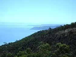 The settlement remained rudimentary for many years. A school began operating in 1884 and moved into purpose-built premises three years later. The first store wasn't opened until Welshman Jackie Jones began selling goods from an upturned boat in the late 1880s. Rosebud suffered from a lack of direct access to Melbourne. When a pier was finally built in 1888, it failed to extend into the deep water, so ferries and passenger ships from the metropolis had to dock at Dromana, a larger town about eight kilometres to the north.[6] A road was formed by clearing a path at Anthony's Nose, the point where Arthurs Seat (305 metres) meets the sea, halfway between Rosebud and Dromana. This, at last, gave Rosebud a road connection to surrounding towns and Melbourne. The Post Office then opened on 27 March 1889.[7]