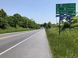 The primary means of travel to and from Rosemont is by road. Despite its small size, the village is served by four separate state highways. The most prominent of these is Maryland Route 17, which skims the southwest side of the village. MD 17 continues southward to Brunswick and onward across the Potomac River to Virginia, where it becomes Virginia State Route 287. To the north, MD 17 interchanges with U.S. Route 340, then continues on to Burkittsville, Middletown and Myersville, where it interchanges with Interstate 70. Other state highways serving Rosemont include Maryland Route 79, Maryland Route 464 and Maryland Route 871.