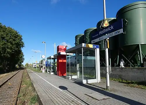 Rosendahl-Holtwick (German: Bahnhof Rosendahl-Holtwick) is a railway station in the town of Rosendahl, North Rhine-Westphalia, Germany. The station lies on the Dortmund–Gronau railway and the train services are operated by Deutsche Bahn.