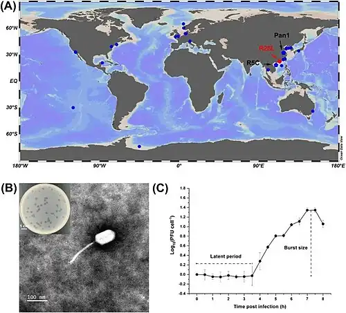 | DSS3Φ2[10] | Podoviridae | Ruegeria pomeroyi DSS3 | Baltimore Inner Harbor, USA |