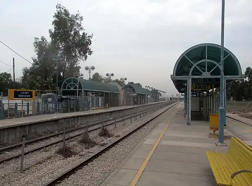Rosh HaAyin–South railway station is a railway station near Rosh HaAyin, Israel. Despite the name, it is located north-west of the city, near the historic site of Antipatris (Tel Afek).