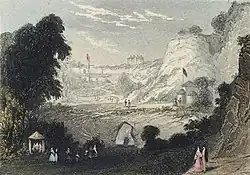 The gardens were built on a chalk pit owned by Jeremiah Rosher who, from 1830, started building a new town, Rosherville, taking advantage of Gravesend's popularity with Londoners visiting for the day by steamboat along the Thames. They became a favourite destination for thousands of Londoners during good weather, many travelling by paddle steamer down the River Thames to disembark at the pier built to service the gardens.