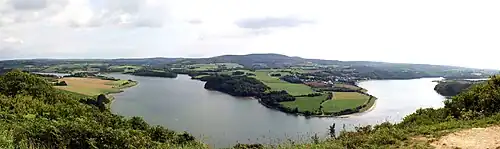 Rosnoën seen from the summit of Ménez-Hom, with the Aulne river in the foreground | |
