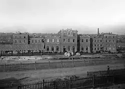 In 1875, the construction of the three-storeyed building of the station Rostov–Vladikavkazskiy (Rostov–Glavniy) was completed. For that time, it was a modern station with good prospects for future growth. On January 15, 1876, Rostov–Glavniy was officially opened. The station building had been rebuilt many times. For example, during World War II in the autumn of 1941 the station building was destroyed by bombing and then restored.[1]