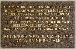In the middle of the 19th century, James de Rothschild founded a hospital at 76 rue de Picpus which included a Hospice for the elderly.[1] The hospital opened on 25 May 1852 and was initially opened to treat and welcome Jewish patients.[2]