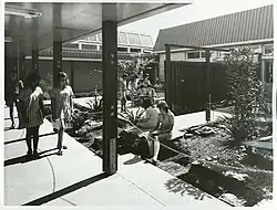Much of the school is built in the "S68" style common for school buildings built in the period 1968 to 1978, featuring single-storey blocks of rooms with cinderblock concrete construction, low-pitched roofs and internal courtyards.[4]