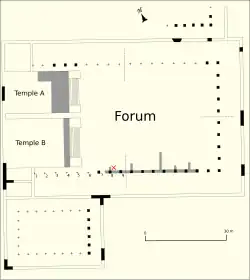 Excavations were carried out by the National Heritage Institute (Tunisia) and the Institut d'Archéologie Méditerranéenne in Aix-en-Provence.[5] Excavation seasons have focused on the forum,[6] which has yielded the remains of Epipaleolithic snail farms and a Neo-Punic settlement. According to the excavators, the forum measured 85 by 56 metres, with a portico over 7 metres wide.[4]