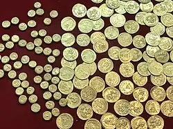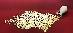 The number of coins issued by Constans II is an indicator of the high level of activity in monetary production at the beginning of his reign, after ten to fifteen years of limited issues at the end of Heraclius' reign.[34] The most recent coins are contemporary with the "burial of the treasure".[29]