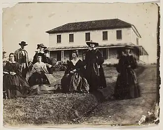 Richard Rouse built his Australian Georgian home, Rouse Hill House, from 1813–1818. Service wings and an arcaded courtyard were added c. 1863. The simple, geometric layout of the garden is probably the oldest surviving in Australia. The house, its immediate surviving estate and outbuildings including stables designed by John Horbury Hunt, is now a house museum cared for by Sydney Living Museums,[16] and is listed on the New South Wales State Heritage Register,[17] and the former Register of the National Estate.[18] Much of the family memorabilia has been preserved, including dolls, clothes and writings of the two girls, Nina (1875-1968) and Kathleen Rouse (1878-1932). These form a unique and fascinating record of late-Victorian Australian childhood,[19] and inspired Ursula Dubosarsky's prize-winning novel "Abyssinia".[20]