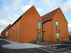Located in the redeveloped and extended former West End Infants’ School, built by the Aldershot School Board in 1898, the new school has a large two-storey extension with 12 classrooms, including science, food technology, design technology and hair and beauty studio, a hall, dining room, staff room and administrative offices and an outdoor workshop area.[2]