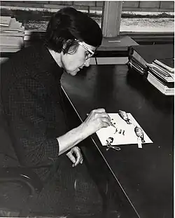 ![]() Laybourne identifying bird feathers, circa 1944.[1] | |