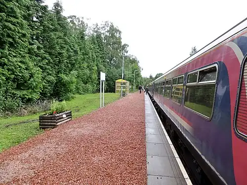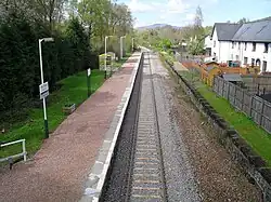 This station opened by the West Highland Railway on 7 August 1894.[4] The station was originally a two platform station, with sidings to the north.[5] The station was host to a LNER camping coach from 1935 to 1939.[6] A camping coach was also positioned here by the Scottish Region from 1952 to 1960.[7]