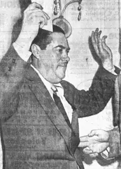 On April 16 of that year, he joined the Philadelphia Phillies as general manager, effectively succeeding owner Robert R. M. Carpenter Jr., who was functioning as the team's GM-without-portfolio. For the next five years, Hamey guided the destiny of the Phillies with decidedly mixed results. The team could not repeat its 1950 "Whiz Kid" success, as key players aged. Philadelphia did introduce talented young pitchers like 1957 National League Rookie of the Year Jack Sanford and 1958 All-Star Turk Farrell. However, Hamey traded away Sanford, a future 24-game winner, after the 1958 season;[5] meanwhile, the fire-balling Farrell became more noted for his after-hours, off-field exploits than his pitching.[6] While the Phils hovered around the .500 level, Hamey did bring to the club its first African-American player, infielder John Irvin Kennedy, who played five games in 1957.[5] In a National League increasingly dominated by black players, the Phillies were the last club to integrate and only two American League teams—the Detroit Tigers and Boston Red Sox—were more steadfast in hewing to the baseball color line.