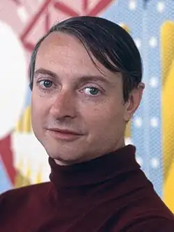 Lichtenstein was born on October 27, 1923, into an upper middle class German-Jewish family in New York City.[2][7][8] His father, Milton, was a real estate broker, and his mother, Beatrice (née Werner), a homemaker.[9] Lichtenstein was raised on New York City's Upper West Side and attended public school until he was 12. Lichtenstein then attended New York's Dwight School, graduating in 1940. He first became interested in art and design as a hobby, through school.[10] Lichtenstein was an avid jazz fan, often attending concerts at the Apollo Theater in Harlem.[10] He frequently drew portraits of the musicians playing their instruments.[10] In 1939, his last year of high school, Lichtenstein enrolled in summer classes at the Art Students League of New York, where he worked under the tutelage of Reginald Marsh.[11]