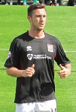 O'Donovan signed for Northampton Town on a free transfer in January 2013.[34] He was signed by Aidy Boothroyd, who had previously signed O'Donovan for Coventry. On 13 May 2013 he played in the 3–0 play-off final defeat to Bradford City FC at Wembley Stadium, he signed a new two-year contract in July 2013 at sixfields and started the season in goal scoring form but injuries curtailed his involvement in the first team after double hernia surgery in October led to a ten-week hiatus.[34] In January 2014 following the dismissal of manager Aidy Boothroyd, O'Donovan flew to Dubai for talks with Brunei DPMM FC at the invitation of the Crown Prince of Brunei.[37][38] A move he later turned down.[39]