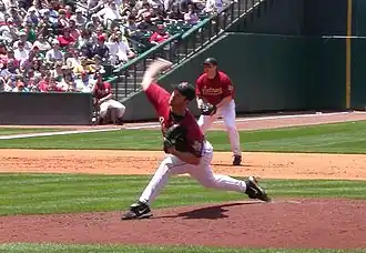 His curveball was a common 2-strike offering, and his changeup was frequently used in those counts to right-handed hitters. He also often used the change as a substitute for a fastball when he was behind in the count.[35] He liked to work his fastball high in the strike zone: "It's often the best pitch for me to throw to a guy who is sitting on a fastball. If I throw it high, a lot of times he'll swing and not catch up to it."[37][38]
