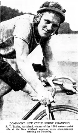 A member of the Papatoetoe Amateur Athletic and Cycling Club,[4] Taylor won the 1000 m sprint at the trials to select the cycling team for the 1938 British Empire Games, beating 1936 Olympic representative George Giles in the final.[5] However, at the Empire Games in Sydney, Taylor was unplaced in the sprint, while Giles won the bronze medal.[6] Taylor also competed in the 1 km time trial at the Sydney games, finishing in seventh place.[7]