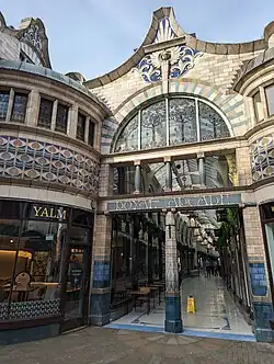 The Royal Arcade is a grade II* listed[1] shopping arcade in Norwich's city centre which runs from Norwich Market on its west side to the Back of the Inns.[2] The architect of the Arcade was George Skipper, the designer was William James Neatby of Royal Doulton, and it was built in 1899 on the site of the former Royal Hotel and Angel inn.[2][3][4]
