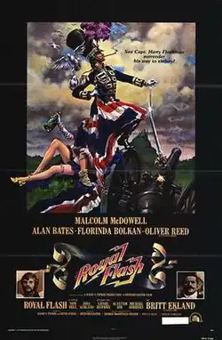 Royal Flash is a 1975 British adventure comedy film based on the second Flashman novel (of the same name, 1970) by George MacDonald Fraser. It stars Malcolm McDowell as Flashman. Additionally, Oliver Reed appeared in the role of Otto von Bismarck, Alan Bates as Rudi von Sternberg, and Florinda Bolkan played Lola Montez. Fraser wrote the screenplay and the film was directed by Richard Lester.