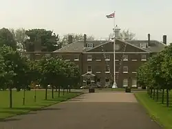 In 1869, the Royal Marine Depot expanded into North Infantry Barracks and South Infantry Barracks, which the Admiralty received in exchange for the Royal Marine Barracks, Woolwich, which were handed over to the War Office following the closure of Woolwich Dockyard.[26] These were then re-named Royal Marine Barracks (North) and Royal Marine Barracks (South), while the Royal Naval Hospital complex was renamed Royal Marine Hospital Barracks[27] (the hospital itself being classed as a Royal Marine Infirmary from the 1870s onwards).[28] The Cavalry Barracks for the time being remained a separate entity, with a wall delineating its boundary with the South barracks.[9] Later, a new row of buildings was built along the line of the boundary, on what is now Wilkinson Drive, providing an Armoury, recreation rooms and a Sergeants' Mess.[29]