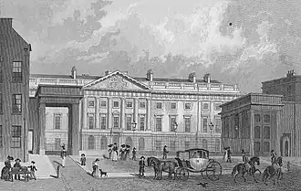 Designed in 1805 by James Johnson, the building was constructed between 1807 and 1812 by Robert Smirke after Johnson died, having never seen his design realised. In honour of both architects, the building was named the Johnson Smirke Building.[94][95] Aiming to increase mint production, the building was designed for multiple purposes including space for new mint machinery, a bullion store, the mint's office and apartments for mint officials.[96]