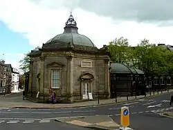 The Royal Pump Room is a Grade II* listed building in Harrogate, North Yorkshire, England. Today it houses the town's museum – operated by North Yorkshire Council. It was formerly a spa water pump house. It is located in Crown Place in the western part of Harrogate town centre, opposite the town's Valley Gardens park. It is bounded by two streets, Crescent Road and Royal Parade. Today, the Pump Room consists of both the original 1842 stone rotunda and a glazed annexe which was opened in 1913.[1] The Pump Room offered guests of the town an all weather facility where they could drink sulphur water which was pumped on site from a natural spring known as the Old Sulphur Well. The building also had a social element to it as it provided guests with a place to meet friends and get to know others.