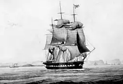 Victor Emmanuel did not remain on the throne to see the fruits of his program; revolution in 1821 forced him to abdicate in favor of his brother Charles Felix. During the revolt, the Austrian Navy mobilized ships to intervene in the conflict (which also involved the Neapolitan Kingdom of the Two Sicilies) and attack the Sardinian fleet, but by the time the Austrians arrived the revolt had ended.[8] The Sardinian fleet saw action against the Barbary states twice in the 1820s; Geneys led a squadron to attack Morocco in 1822 that achieved little. Geneys ordered the fleet to attack the Vilayet of Tripoli in 1825, resulting in the Battle of Tripoli.[1][7] The Sardinian success at Tripoli convinced Charles Felix to continue his predecessor's construction program, ordering a number of frigates, corvettes and sloops in the late 1820s. These included the 50-gun frigates Bereldo and Haute Combe, the 60-gun frigates Carlo Felice and Regina, the 44-gun frigate Euridice, and the 20-gun corvette Aurora. By 1829, the fleet included a total of eight frigates.[1] During this period, the fleet kept warships in the Levant to protect Sardinian interests in the region during the Greek War of Independence, but they saw little activity.[9]