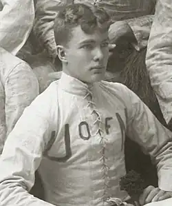 As a freshman, Farrand was the starting quarterback for the undefeated 1887 Michigan Wolverines football team that outscored its opponents by a combined score of 102 to 10.[2][3] In November 1887, Farrand led Michigan to an 8–0 win over Notre Dame in the first meeting between the two schools.[4][5][6] However, when the teams agreed to play two additional games in the spring of 1888, Farrand was left home in Ann Arbor with his knee in a cast and was replaced by Ball.[7] He was also a highly rated boxer while attending the University of Michigan. In his most famous bout, he fought the mayor of St. Clair, Michigan, with both competitors being knocked out in the third round.[8]