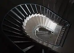 The northern range of this complex of buildings contained a central granary flanked by flour mills, with 27 sets of millstones powered by a pair of steam engines, capable of producing 270,000 lb (120,000 kg) of flour per week.[2] Grain could be loaded directly into the granary from vessels on the quayside. The southern range contained the bakery, with two sets of six ovens, back-to-back either side of the central spine wall (beneath a row of four square chimneys).[17] There was a central boiler house with a chimney, with one engine to the north and the other to the south (the engines also powered biscuit-making equipment).[17] The biscuits were dried on the upper floors of the side ranges; there was also a drying kiln above the boiler house. Although fully equipped as a biscuit and bread factory when opened in 1834, it was initially given only one full production run; then in 1839 the equipment was removed and installed instead in the Victualling Yard at Deptford.[17] There was no more baking here until 1843 when, newly equipped, the complex again began to be used for its original purpose (which it continued to fulfil until 1925). It subsequently became a clothing and equipment store. The building was damaged by a fire in 1929, and again in 1960.