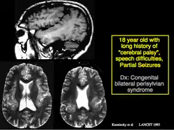 Kuzniecky described the Kuzniecky Syndrome in 1991, also known as perisylvian polymicrogyria.[6] The syndrome is characterized by seizures, cognitive abnormalities, and a peculiar inability to use the mouth and tongue muscles. This syndrome is recognized by as a specific malformation of the brain.[7]