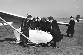 The prototype R-16 Lepke first flew at Esztergom in the summer of 1949. A series of sixty-five slightly modified R-16bs followed over 1952-3 and these became the standard Hungarian single-seat trainer; once launching was mastered, pilots continued in the Lepke to their C certificates. The Lepkes were retired in the 1960s, after ten years of use.[1][2]
