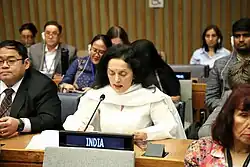 Ruchira Kamboj (née Patni, born 3 May 1964) is a retired Indian diplomat of 1987 batch of Indian Foreign Service who has served as the India's Permanent Representative to the United Nations from August 2022 to May 2024 until her retirement. She has previously served as High Commissioner of India to South Africa, first female Indian Ambassador to Bhutan and Ambassador/Permanent Representative of India to UNESCO, Paris.[5]
