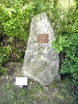The Alliance Stone was erected at the Rudelsburg in 1997 by members of the Rudelsburger Alliance to commemorate the tenth anniversary of the first official meeting of student fraternities in the GDR. An earlier stone made of concrete had been placed next to the Bismarck Monument in 1987. This “Old Alliance Stone” is still in its original place.