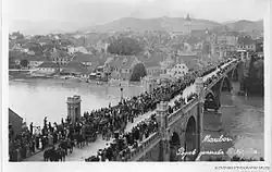 Maister was born in the Upper Carniolan commercial town of Kamnik, then part of Austria-Hungary. He came from a German-speaking family. Letters from his youth have been preserved in which he expressed his rejection of Slavs and Jews, but eventually he turned to the Slovene national cause.[1] A career soldier, during World War I, he served in the Austro-Hungarian Army. In 1917, he was sent to Graz promoted to the rank of a major. In 1918, near the end of the war when it was obvious that Austria-Hungary was losing, the city council of Marburg, then German-speaking by large majority, proclaimed the town part of German-Austria. Maister organized Slovene volunteer forces of 4000 soldiers and 200 officers and in the night of 23 November 1918 seized control of the city of Maribor and the surrounding region of Lower Styria. This date has been recognized as a state holiday in Slovenia since 2005. The Slovene National Council for Lower Styria awarded him the rank of general on November 1. The German-speaking city was thus secured for the newly formed State of Slovenes, Croats and Serbs, which united with the Kingdom of Serbia into the Kingdom of Serbs, Croats and Slovenes on December 1. Maister's rank as a general was confirmed by the National Government of the Slovene part of the Kingdom as a "lieutenant with the title and character of a general" on 11 December 1918, which was later also confirmed by the Belgrade Government.[2] On 14 January he commanded Slovenian forces in the Battle of Lučane.