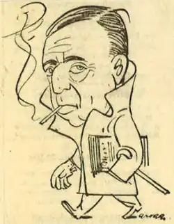 In the foreword to the second edition of the Ruesser, Heinrich Kuhn reports on Bolo's relation to Carnival: “Artists and cabaret artists, that was his world. But the Basel Carnival was his main specialty. From the window of the dispatch office, in the "Haus zum Gold", the former headquarters of the National-Zeitung on the market square, he hammered the entire report on the street carnival primavista into the typewriter. The fact that he not only knew the drum and piccolo marches, but also practiced the art of drumming and whistling, made him a competent reviewer u. a. of the Monster Drummeli in the Küchlin Theatre Basel. Many "Fasnachtsclique" (groups performing the carnival) did not always accept his criticism without contradiction and so it could not be missing that one day he himself became a subject of the carnival (Bolo in front of a judge). As a good carnival person, he reacted calmly and with humor to the masked intrigue. [...] In his enigmatic novella, Bolo tells of a Basel original obsessed with carnival. He himself was such an original, fused with his Basel, who knew about the secrets and peculiarities of the old Rhine city. Bolo knew how to express this knowledge in soot and in many dialect poems."