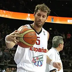 Fernández represented the senior Spanish national team internationally, and became the most capped player ever for Spain, with 266 matches.[1] He has won two FIBA World Cup titles, in 2006 and 2019, two Olympic silver medals in 2008 and 2012, as well as a bronze medal at the 2016 Summer Olympics. He also won four EuroBasket titles in 2009, 2011, 2015 and 2022, a silver medal in 2007, and a bronze medal in 2013. Fernández earned an All-EuroBasket Team selection in 2009.