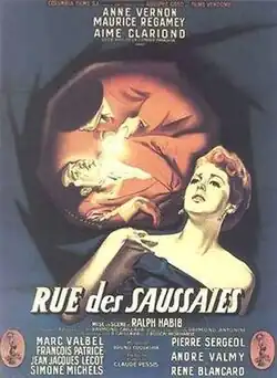 Rue des Saussaies is a 1951 French crime drama film directed by Ralph Habib and starring Anne Vernon, Maurice Régamey and Aimé Clariond.[1] It takes its name from the Rue des Saussaies, a street in the 8th arrondissement of Paris. The film's sets were designed by the art director Paul Bertrand.