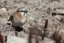 The rufous-necked snowfinch (Pyrgilauda ruficollis) is a species of bird in the sparrow family.