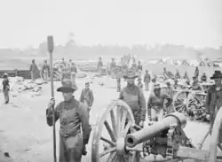 Pettit's final action was at the Battle of Chancellorsville. At Chancellorsville, fellow division member Col. Edward E. Cross of the 5th New Hampshire Infantry Regiment noted the regiments gallant efforts to hold their ground. "Sunday morning…Petitt’s iron battery of twenty-pound Parrott’s, all firing rapidly. In a few moments the enemy got a splendid rifle battery into position, which fired with wonderful accuracy. So heavy was the fire that Captain Petit was compelled for the first time during the war to limber up and leave–but was instantly ordered back."[6] Pettit would later write of the action of civilians shooting shotguns at the retreating Union soldiers, and of woman and children throwing rocks at the fleeing Union troops.[7]