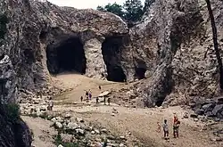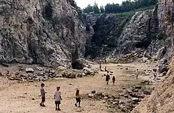 Ruggles Mine is an open-pit mine that was turned into a tourist attraction. It was closed but was recently sold and has reopened.[1] The mine is located 40 miles (64 km) northwest of Concord, New Hampshire, in the town of Grafton, a short distance from Route 4 at the village green. The spacious pit includes tunnels and underground chambers, some of which are filled with water. Visitors are allowed to keep any of the various minerals that they find on the mine floor or that can be hammered loose from the walls of the pit.[2][3]