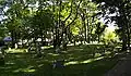 Since many of the burials were in the 18th century, the cemetery is exemplary of funerary art during the colonial period. For example, many of the slate gravestones feature a skull and wings motif. Two gravestones have been specifically identified as the work of carver Joseph Lamson (1658–1722); that of Mary Cutler (died 1703), and that of John Winthrop's son Deane Winthrop (died 1703/4).[2] Work by stone carvers Robert Fowle and Richard Adams can also be found among the graves.[5]