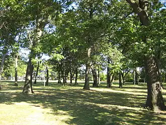 Runnymede Park is a medium-sized public park located in The Junction neighbourhood of Toronto, Canada, one block east of Runnymede Road. Its southern boundary is the West Toronto Yard used by the Canadian Pacific Railway, its northern boundary is Ryding Avenue, while a laneway and parking lot make up the western and eastern boundaries respectively. It is relatively flat, and features many soaring mature oak trees.