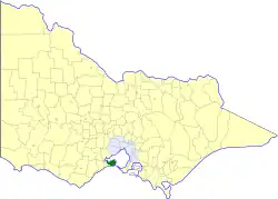 The Rural City of Bellarine was a local government area southeast of the regional city of Geelong, Victoria, Australia, covering most of the Bellarine Peninsula. The Rural City covered an area of 331.78 square kilometres (128.1 sq mi), and from its origin as the Portarlington Road District, existed in a number of forms and under different names from 1853 until 1993.