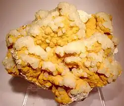 The best known and most prolific zinc mining region of north Arkansas for many years was the Rush Creek mining district of Marion County. Its history began when John Wolfer—an early prospector along the Buffalo River—discovered a large deposit of zinc on the creek in southern Marion County. George Chase purchased Wolfer's claim and established the Morning Star Mining Company, which eventually became one of the largest producers of zinc in Arkansas.[1] One day a miner at the Morning Star Mine extracted a single mass of pure smithsonite (zinc carbonate) weighing 12,750 pounds.[2]