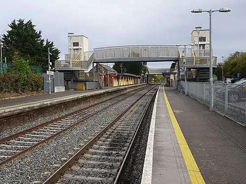 In September 2007 a temporary car park was made available on the West side of the station to cater for the large volume of cars at the station. Before this a farmer who owned a field to the East of the station allowed cars to park in his field free of charge. He eventually closed this though due to illegal dumping. In 2010, upgrade work was carried out around the station. A large new car park was installed on the west side of the station. These upgrade works also saw the removal of the original wrought iron bridge over the tracks. It was replaced with a more accessible bridge incorporating lifts on both sides. In 2015 the road bridge of the R128 over the rail line was removed and replaced with a new bridge with a wider footpath.